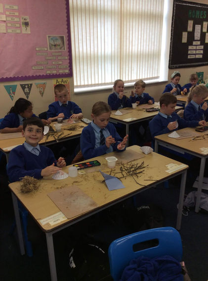 Year 3 had a busy afternoon making their Stone Age Houses. It was a bit tricky using sticks and hay for the roof, a little messy but we succeeded.